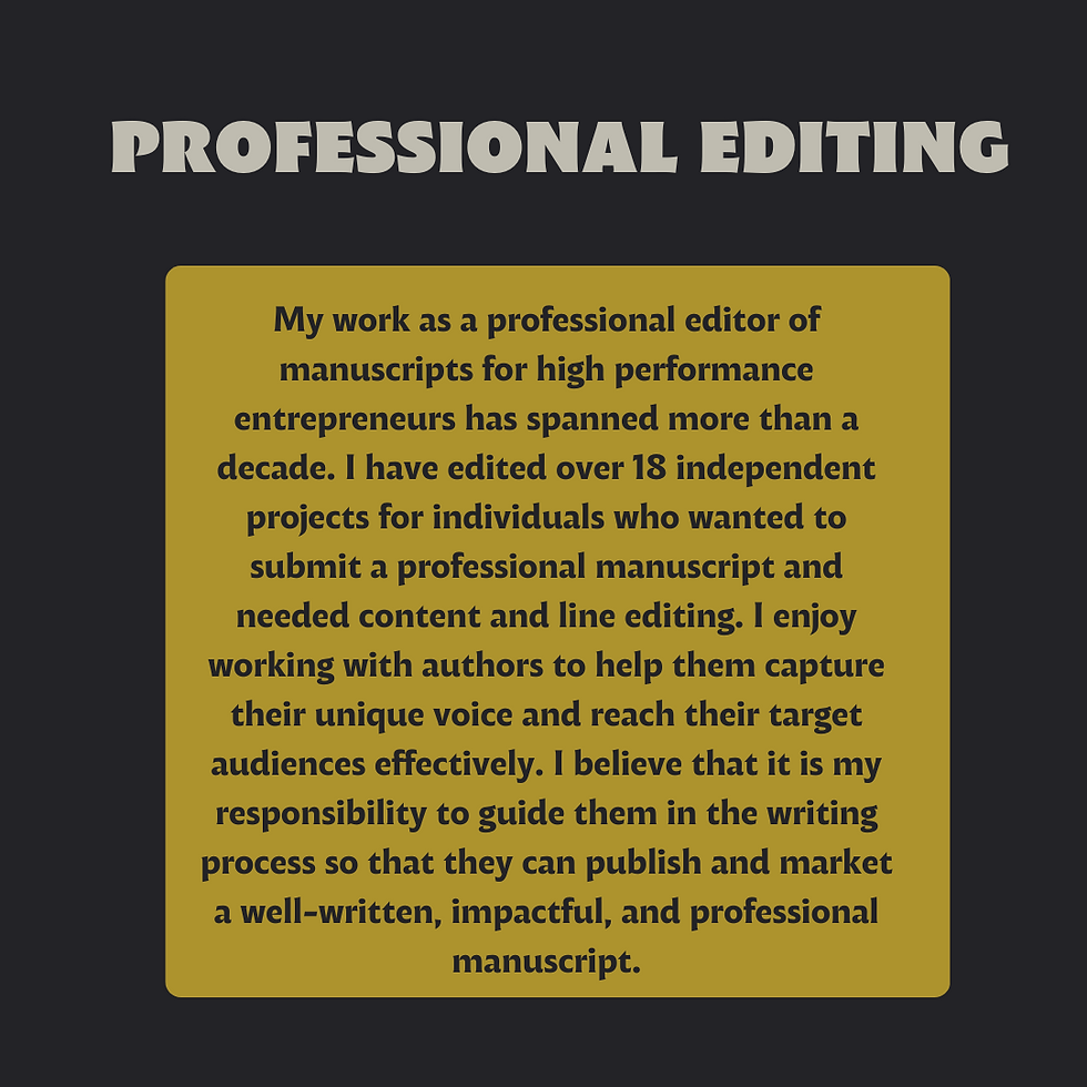 I am Dr. Joel Boyce, founder of JCB EdPRO. JCB EdPRO is an educational consulting company that provides professional manuscript editing, writing coaching, curriculum development, and professional development for high performance entrepreneurs, school districts, and educational companies.